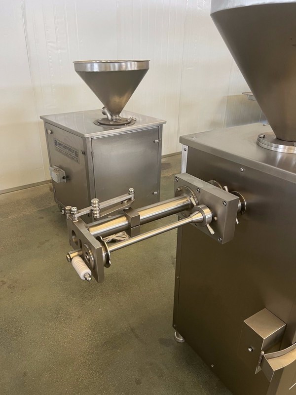 Una macchina per clistere di carne, o una macchina per riempire la carne o il riempitore di salsiccia, viene utilizzata nell'industria alimentare per riempire i gusci con miscele di carne macinata.Questa macchina è comunemente usata per produrre vari tipi di salsicce e altri prodotti a base di carne farcitaIl processo consiste nel caricare la macchina con la miscela di carne preparata, che viene poi spinta attraverso un ugello in un involucro, in genere realizzato in materiali naturali o sintetici.